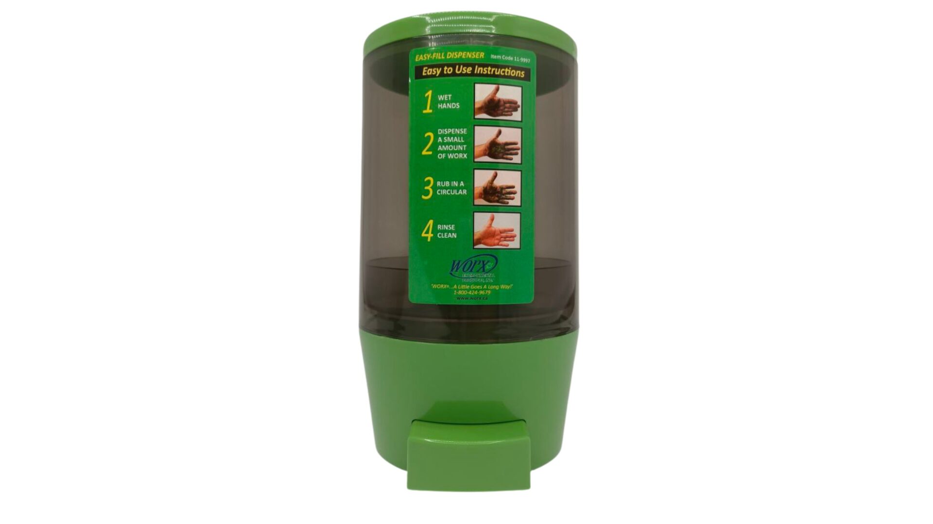 Designed for WORX® Biodegradable Hand Cleaner, this sturdy dispenser offers mess-free, efficient dispensing in high-traffic or industrial areas. Easy to refill, easy to use—perfect for clean hands anytime.